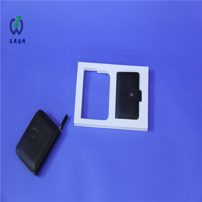 皮具产品(如钱包、卡包)包装需避免刮擦、维持产品形状,五周泡棉的白色 EVA 内衬方案,完美平衡了防护与简约质感。