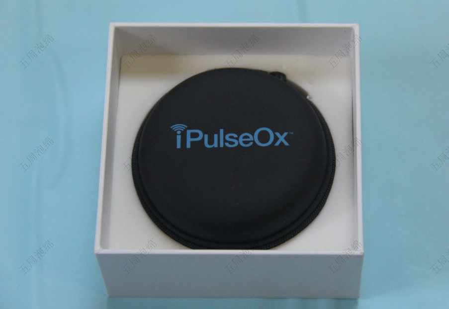 对于 iPulseOx 检测仪这类圆形便携设备,专属海绵内衬是 “轻量防护 + 包装质感” 的双重解决方案。这类设备的核心需求是 “便携性”,包装既不能过重,又要保障设备安全。